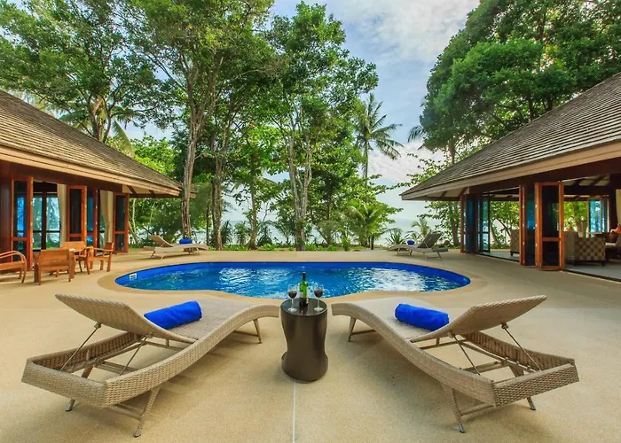 Das 5-Sterne-Hotel Koh Jum Beach Villas "A Member Of Secret Retreats" mit Massagen und Spa-Dienstleistungen ist ideal, ca. 4 Kilometer von der Ko Pu entfernt, gelegen. Schwimmen Sie in einem Swimmingpool oder spazieren Sie durch einen tropischen Garten im Hotel.